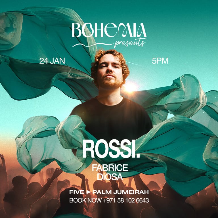 Joining him on the beachfront stage are Dubai favourites Fabrice and DiOSA, setting the tone with melodic and soulful house that moves effortlessly from golden hour into the night. Expect deep basslines, hypnotic rhythms, and the unmistakable Bohemia energy that defines Dubai’s Bohemia Presents Rossi. in Dubai at FIVE Palm Jumeirah Hotel, Dubai, United Arab Emirates events Nightlife Bohemia at Five Palm Jumeirah