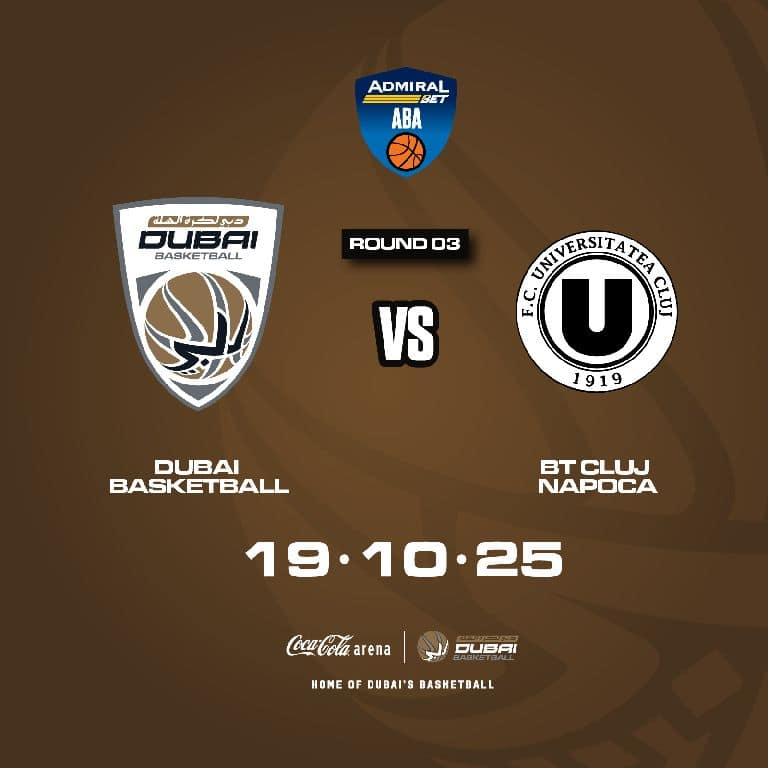 – The third round of the ABA League brings a first-time showdown as Dubai Basketball goes up against Romania’s U-BT Cluj-Napoca on 19 October 2025 at Coca-Cola Arena. With two rising forces meeting on the European stage, Dubai is set to turn this debut clash into a game to remember. Secure your tickets now and be part of another electrifying night at Coca-Cola Arena! Dubai Basketball vs U-BT Cluj-Napoca at Coca-Cola Arena, Dubai, United Arab Emirates events Sports Events Coca-Cola Arena