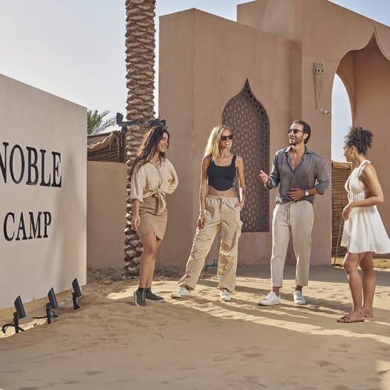 ⭐ Take Trip into the magic of the desert with the renewed and elevated Noble Live Dinner Show and Safari! Choose to start your evening with a Desert Safari Adventure, including dune bashing and optional sandboarding, or head straight to camp for a relaxing evening. Get your tickets today! Pick-Up Dinner + Safari → pick-up at 3:00 PM Dinner Only → pick-up at 4:00 PM Private car for all tickets, shared car for Premium + Safari. Highlights Dinner Show at its Finest – with an optional desert safari to start your evening. World-Class Performances – Be mesmerized by Sufi whirling, Dabka, Khaliji, belly dance, live music, and a breathtaking fire show. ️ Fine Dining in the Desert – Enjoy a high-quality buffet or savor a curated 4-course menu, crafted by our 5-star chef, with vegetarian options available. Arabian Elegance Beyond Compare – Camel rides at sunset, intricate henna artistry, and a boutique souq add cultural charm to your evening. Luxury Arrival & Departure – Travel in style with private 4×4 transfers, ensuring comfort and exclusivity from start to finish. General Info Dates and times: select your date & time directly in the ticket selector ⏳ Dinner Show: 2.5h | Dinner + Safari: 3.5–4h Ends ~9:30 PM (return to hotel) Location: Noble Camp, Dubai Desert (hotel pick-up included) Age requirement: all ages welcome! – Infants (0–2 years) do not require tickets – Ages 3–12: Child rates apply – Ages 12+: Adult rates apply ♿ Accessibility: the experience takes place in the desert; please contact us in advance if mobility assistance is needed ❓ Please consult the FAQs of this experience here or contact us on WhatsApp Description Escape the city and dive into a night of magic at the Noble Desert Show. Set in the heart of the Dubai desert, this unforgettable experience blends authentic Arabian culture, delicious dining, and world-class entertainment. Whether you opt for the full desert adventure or the elegant dinner show experience, Noble Life offers a truly immersive evening you won’t forget. Don’t miss out — get your tickets for Noble Desert Show in Dubai now! Dubai’s Best Desert Safari with Noble Life Dinner Show (Renewed & Elevated) at Noble Camp, Dubai, United Arab Emirates