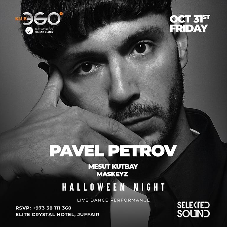 3rd Prize: $100 Bahrain! Halloween just got serious. SelektedBahrain x Klub360 proudly presents: Pavel Petrov – one of the most exciting DJs and producers globally, performing live in Bahrain this Halloween night!  From Europe to South America, Asia to the Middle East, he has played massive stages at ADE, Sonus Festival, Ultra Europe, EXE, and top clubs across Berlin, Amsterdam, Ibiza, and Istanbul. EXE Audio Label Boss’s sound has moved thousands — now it’s your turn.  Get ready for a high-energy Halloween party with non-stop music, a packed dancefloor, and pure vibes. Halloween Night: Pavel Petrov at Klub 360 at Klub360, Juffair events Nightlife Klub360 Pavel Petrov