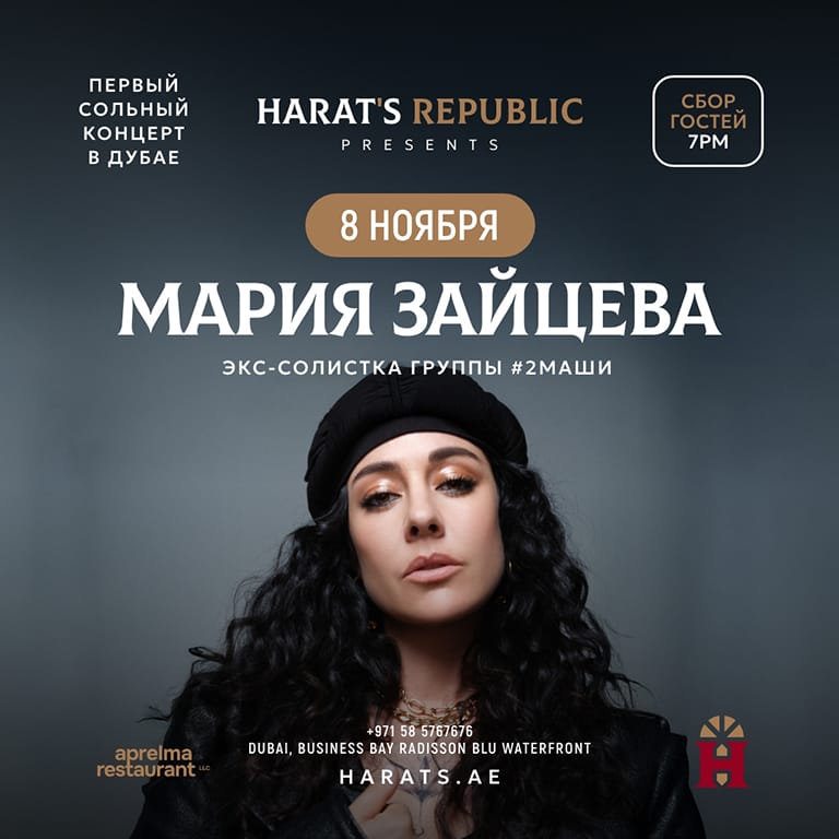 Book Tickets for Maria Zaitseva / Мария Зайцева Live at Harat’s Republic, Dubai Concerts at Special Price Now from emiratesoffers.com
