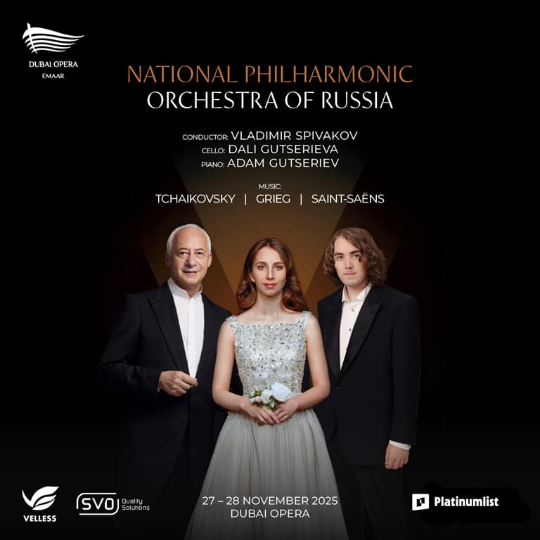 After their successful Dubai performances two years ago, they return to captivate audiences once more, with Adam performing Grieg’s Piano Concerto and Dali interpreting Saint-Saëns’ Cello Concerto. National Philharmonic Orchestra of Russia at Dubai Opera, Sheikh Mohammed bin Rashid Boulevard, Dubai, United Arab Emirates events Classical Events Dubai Opera