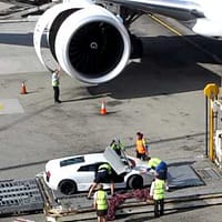 September 30, 2016This Lamborghini is seen just after being removed from the cargo hold of an Emirates Airlines...